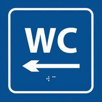 | Productnaam | Wc-bord verhoogd in braille met pijl naar links, Zelfklevend: ja, Materiaal: PVC, Type bord: Indicatie |