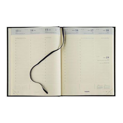 - Weekagenda met omslag van imitatieleer met band aan de zijkant.