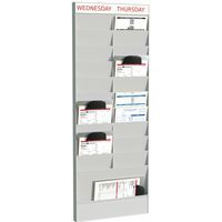 Weekplanner met structuur en vakken van zeer bestendig HIPS. Plaats de basis-, uitbreidings- en aanvullingselementen eenvoudig naast elkaar, afhankelijk van uw wensen. Kies de afmetingen van uw planner en kies een basisstelling met of zonder aanbouwelement.