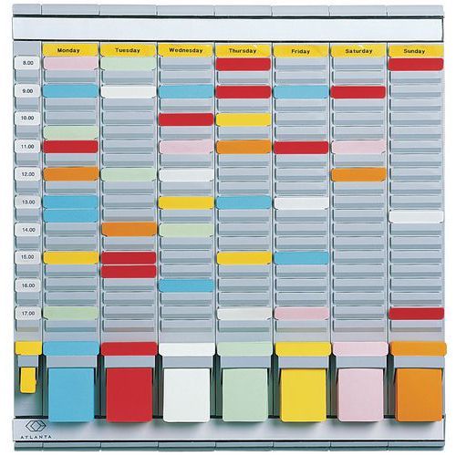 De hele week in één overzicht. Zeer geschikt voor gebruik in ziekenhuizen, garages of hotels.