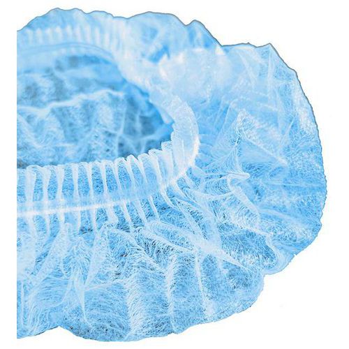 - Haarnetje rond en blauw van non-woven polypropyleen, zonder latex.