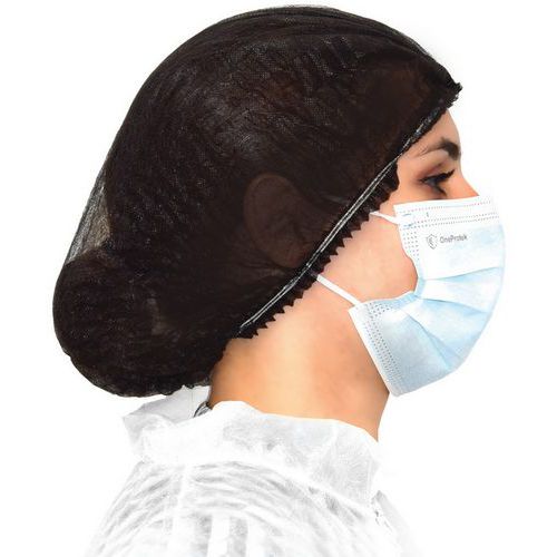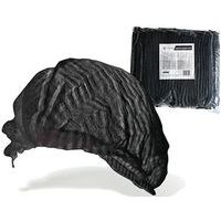- Haarnetje rond en zwart van non-woven polypropyleen, zonder latex.