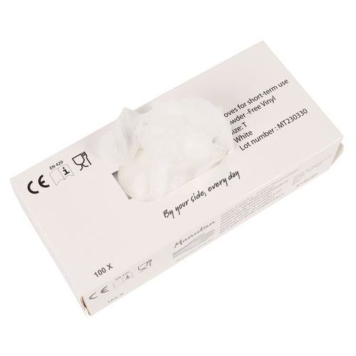 - Vinylhandschoenen, soepel voor een goede behendigheid.