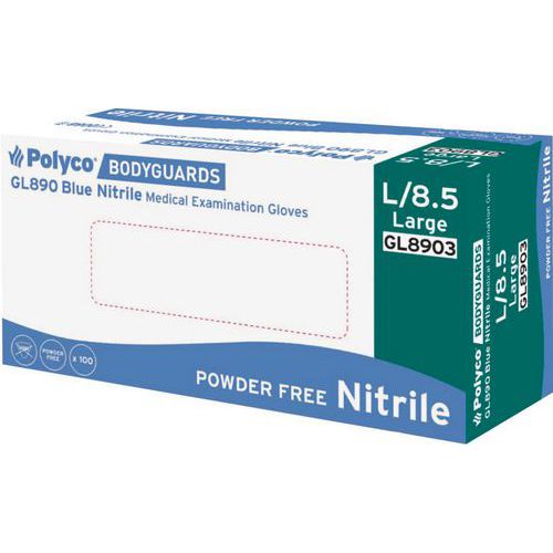 Wegwerphandschoenen van nitril met chemische weerstand, blauw, poedervrij - Polyco