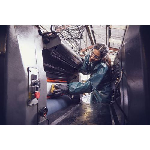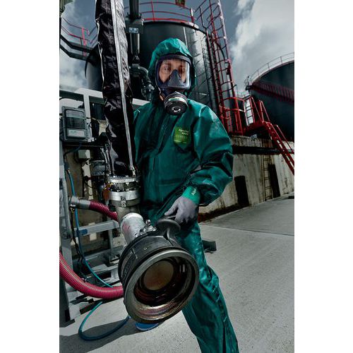 AlphaTec® 4000 Ultrasonically Welded & Taped is een robuuste overall van chemische bescherming die door permeatie is getest en bestand is tegen meer dan 200 chemische risico's, waaronder chemische oorlogsstoffen. . Deze overall met integrale bescherming heeft ook dubbele polsen en een dubbele ritssluiting, waardoor de defensieve barrière nog verder wordt versterkt. . Dankzij de gelijmde en gelaste naden biedt deze beschermende overall de gebruikers een stevige en betrouwbare barrière tegen allerlei gevaren. . De gebreide binnenboorden en het textiel vereenvoudigen de draagbaarheid voor de drager. . Dankzij de elastische capuchon, de taille, de boorden en de enkels in twee delen is het aan- en uittrekken eenvoudiger, voor een persoonlijke bescherming die eenvoudig te dragen is.