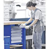 Werkbank met maximale stabiliteit met een draagvermogen tot 3 t met extreem robuuste en bestendige werkbankplateaus Een grote keuze aan versies dankzij de verschillende componenten, steunen, materialen en oppervlakken Optimaal niveau van gebruikscomfort en ergonomie dankzij in hoogte verstelbare poten van de werkbank voor een ergonomische werkhoogte en een optimale ruimte voor de benen in het geval van zittende activiteiten en dankzij ons modulaire systeem Aanpasbaar op elk gewenst moment aan nieuwe werkomgevingen, grote montageflexibiliteit en wijziging van alle onderdelen van het modulaire systeem Totale mobiliteit met de uitrusting met wielen van rubber of van nylon voor een mobiel gebruik op verschillende werkplekken Snelle en eenvoudige montage dankzij de werkbankplateaus met voorgeboorde gaten, met schroefbare moeren (voorgemonteerd) voor de bevestiging van alle steunen en ladekasten
