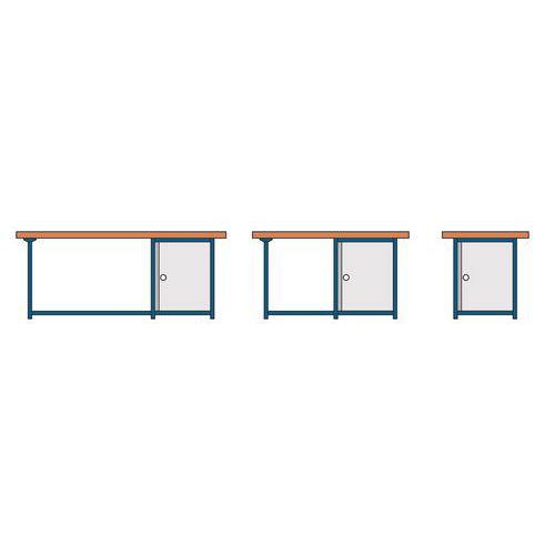 Bijzonder stevige werkbank, geschikt voor gebruik op de werkplaats. Uitgerust met een stevig legbord in geverfd multiplex om met uw gereedschap te werken. Met vergrendelbare werkbankkast om uw materiaal in alle veiligheid op te bergen.