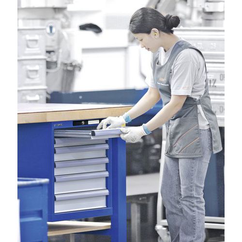 Werkbank met maximale stabiliteit met een draagvermogen tot 3 t met extreem robuuste en bestendige werkbankplateaus Een grote keuze aan versies dankzij de verschillende componenten, steunen, materialen en oppervlakken Optimaal niveau van gebruikscomfort en ergonomie dankzij in hoogte verstelbare poten van de werkbank voor een ergonomische werkhoogte en een optimale ruimte voor de benen in het geval van zittende activiteiten en dankzij ons modulaire systeem Aanpasbaar op elk gewenst moment aan nieuwe werkomgevingen, grote montageflexibiliteit en wijziging van alle onderdelen van het modulaire systeem Totale mobiliteit met de uitrusting met wielen van rubber of van nylon voor een mobiel gebruik op verschillende werkplekken Snelle en eenvoudige montage dankzij de werkbankplateaus met voorgeboorde gaten, met schroefbare moeren (voorgemonteerd) voor de bevestiging van alle steunen en ladekasten
