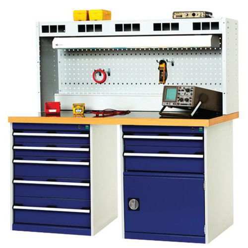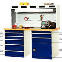 | Productnaam | Werkbank Cubio Combi met 2 ladekasten, Totale hoogte: 840 mm, Totale breedte: 2000 mm |