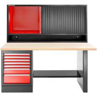 | Productnaam | Werkbank hoog met 7 laden en rolkast en houten bovenblad, Totale hoogte: 1015 mm |