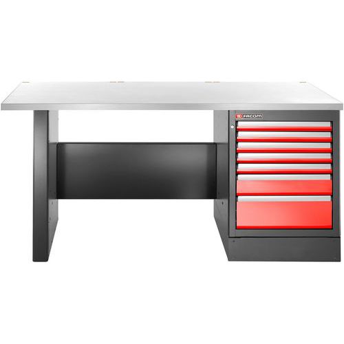 | Productnaam | Werkbank hoog met 7 lades en rvs bovenblad, Totale hoogte: 1055 mm, Werkbank blad materiaal: Roestvrij staal |