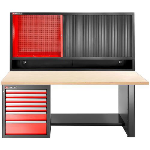 | Productnaam | Werkbank laag 7 laden met rolkast met houten bovenblad, Totale hoogte: 1015 mm |