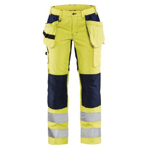 Werkbroek Dames High Vis met stretch 7163 - Geel/Marineblauw