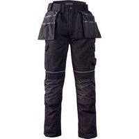 Werkbroek. Katoen / polyester (65% / 35%). 300 g/m2. Elastische band in de taille aan beide zijden. Riemlussen. Sluiting met een rits en een knoop. Meerdere zakken aan de voor-en achterkant. Gemakkelijk toegankelijke, versterkte buitenzakken voor het opbergen van klein gereedschap of schroeven of spijkers (deze kunnen naar keuze van de gebruiker in de hoofdvakken worden gestoken). Reflecterende biaisbanden. Hamerlus. Zakken voor kniebeschermers van versterkt stof. Drievoudige stiksels op de pijpen.
