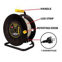 - Na het afrollen gaat het licht branden: de bouwplaats wordt verlicht met 19.230 of 32.000 lumen (185 W of 305 W afhankelijk van de uitvoering).