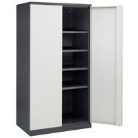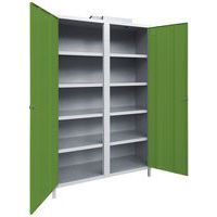 - Solide werkplaatskast voor materialen, van gelast staal met draaideuren.