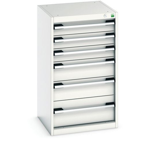 Zeer stevige ladekast van hoge kwaliteit. Laden zijn uitschuifbaar en volledig toegankelijk. Geleiders met automatische sluiting en veiligheidsblokkering voorkomen dat de laden ongewild opengaan. Op de handgrepen van de laden kan een etiket geplakt worden. De laden hebben een centrale vergrendeling..