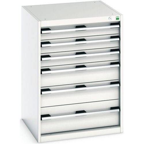 Zeer stevige ladekast van hoge kwaliteit. Laden zijn uittrekbaar en volledig toegankelijk. Geleiders met automatische sluiting en veiligheidsblokkering voorkomen dat de laden ongewild opengaan. Op de handgrepen van de laden kan een etiket geplakt worden. De laden hebben een centrale vergrendeling.