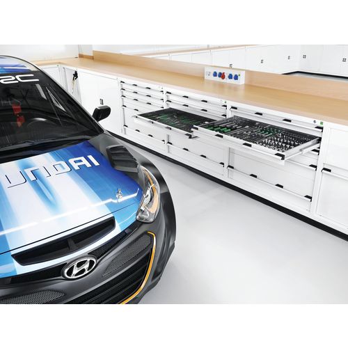 Zeer stevige ladekast van hoge kwaliteit. Laden zijn uitschuifbaar en volledig toegankelijk. Geleiders met automatische sluiting en veiligheidsblokkering voorkomen dat de laden ongewild opengaan. Op de handgrepen van de laden kan een etiket geplakt worden. De laden hebben een centrale vergrendeling.