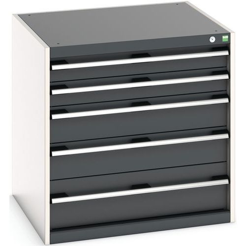 Zeer stevige ladekast van hoge kwaliteit. Laden zijn uittrekbaar en volledig toegankelijk. Geleiders met automatische sluiting en veiligheidsblokkering voorkomen dat de laden ongewild opengaan. Op de handgrepen van de laden kan een etiket geplakt worden. De laden hebben een centrale vergrendeling.