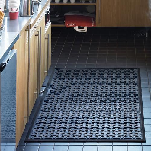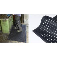 Het sterke profiel maakt hem slipvast en de open constructie voert vloeistoffen af en ventileert naar de vloer.