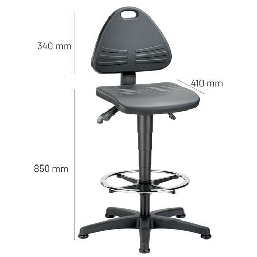 | Productnaam | Werkplaatsstoel Bimos Isitec, Type voet: Stoeldoppen, Zitting materiaal: Polyurethaan, Stoel model: Hoog |