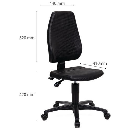 | Productnaam | Werkplaatsstoel ErgoSupport, Type voet: Wielen, Zitting materiaal: Polyurethaan, Stoel model: Laag |
