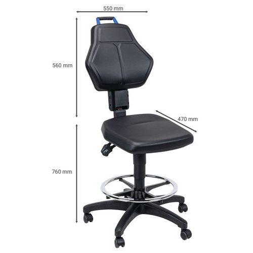 | Productnaam | Werkplaatsstoel, Zitting materiaal: Imitatieleer, Rug: ja, Stoel model: Hoog, Voetensteun: ja |