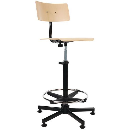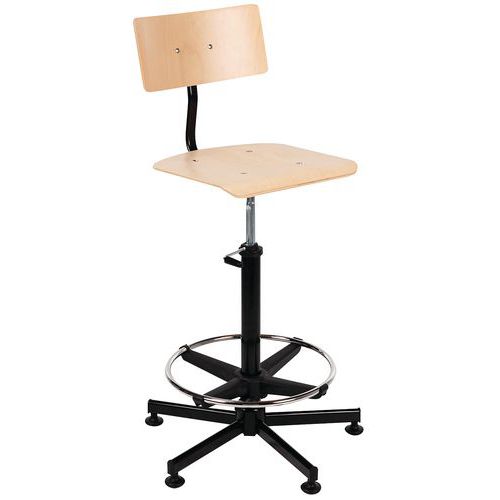 | Productnaam | Werkplaatsstoel hout, Met armleggers: nee, Type onderstel: 5 poten, Zitting materiaal: Hout multiplex |