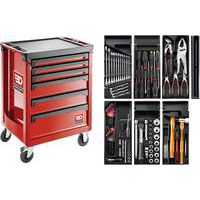 - Gereedschapswagen met 6 lades met 9 modules van foam en 80 gereedschappen. Optimaal gebruikscomfort met handgreep aan 1 van de 2 zijden. Grote veiligheid met centraal slot met sleutel. Stabiliteit: geoptimaliseerde wielen, 2 bokwielen en 2 zwenkwielen met rem.