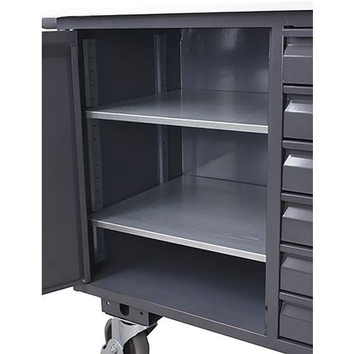 | Productnaam | Werkplaatswagen ESD met 1 kast 6 laden zonder rand, Totale hoogte: 960 mm, Aantal laden: 6 |