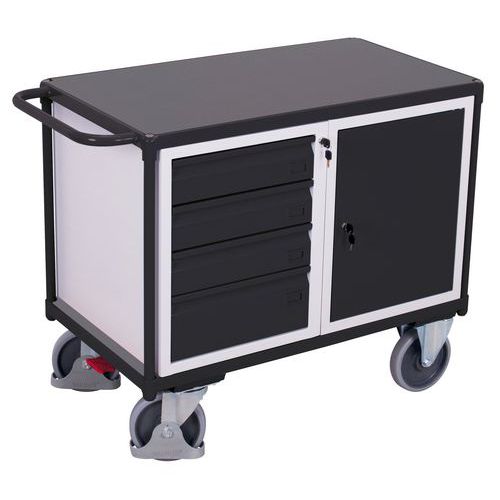 Tafelwagen met 1 laadvlak, 1 kast en 4 laden, Totale hoogte: 930 mm, Aantal laden: 4, Totale breedte: 1190 mm
