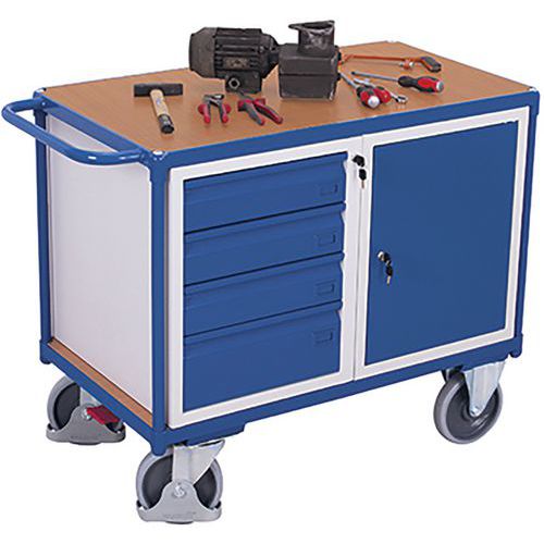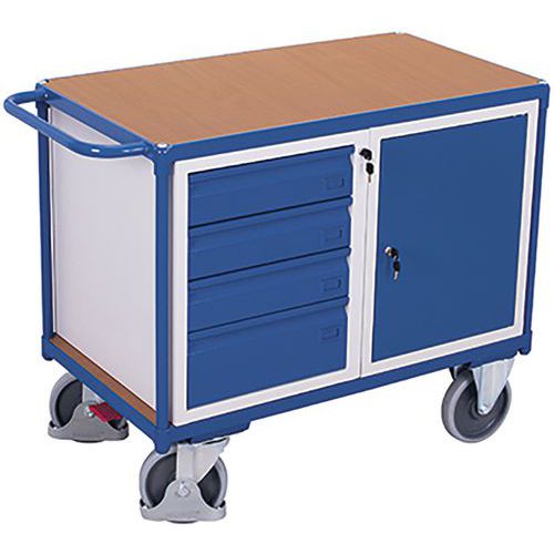 Tafelwagen met 1 laadvlak, 1 kast en 4 laden