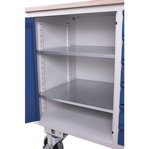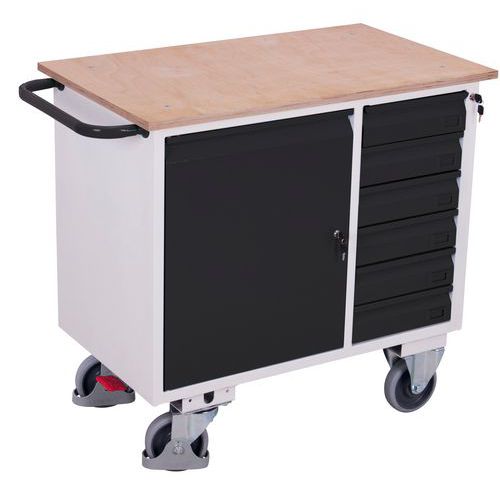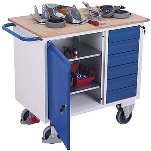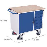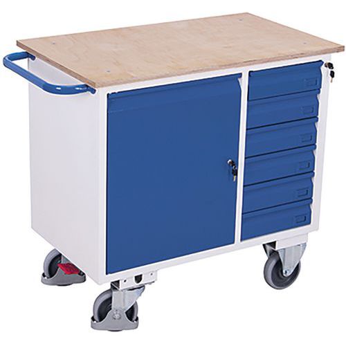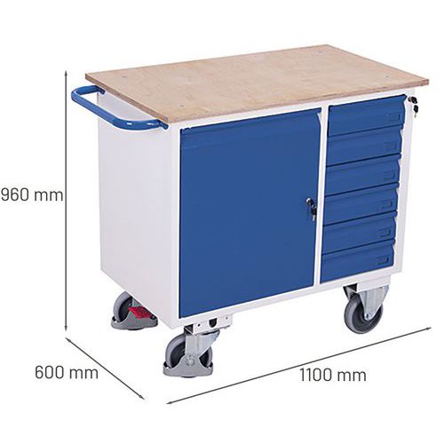 Werkplaatswagen met 1 kast en 6 laden, zonder rand, Totale hoogte: 960 mm, Aantal laden: 6