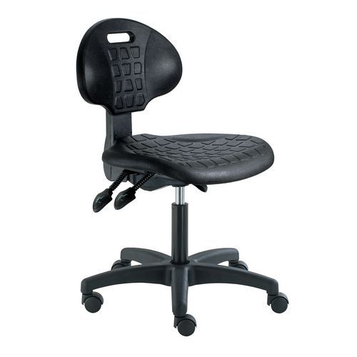| Productnaam | Werkstoel met harde wielen, Met armleggers: nee, Zitting materiaal: Polyurethaan, Stoel model: Verstelbaar |