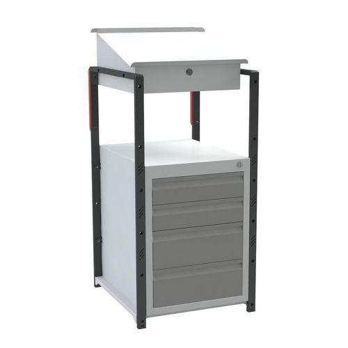 | Productnaam | Werktafel met 4 laden 4 rubber voeten, Materiaal: staal, Geleverd gemonteerd: ja, Gewicht: 65 kg |