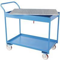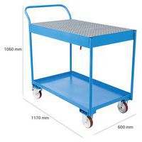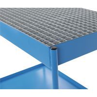 Werktafel met opvangbak en rooster, Inhoud opvangbak: 50 L, Kleur: Blauw, Totale lengte: 1170 mm