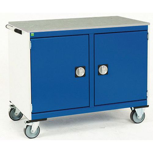 Laden met veiligheidsvergrendeling, toegestane belasting 50 kg. Nuttige afmetingen van laden: BxD 400x400mm en 525x400mm Perfo gevoerde deur en verstelbaar gegalvaniseerd stalen plank Multiplex of Lino blad met randen of plateaus. Totaal toelaatbare belasting 600 kg