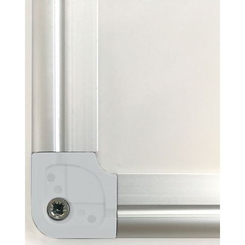 Geëmailleerd whiteboard met stevig en elegant frame van aluminium. Praktisch voor het ophangen van mededelingen dankzij het magnetische oppervlak. Geschikt voor intensief gebruik. Garantie tegen krassen en strepen. Met accessoirehouder om uw markeerstiften binnen handbereik te houden. Snelle en eenvoudige wandmontage (bevestigingsmaterialen meegeleverd). 4 boorgaten achter in de 4 hoeken (diameter 3,5 mm). Bevestigingsgaten verborgen achter kunststof schroefdoppen.