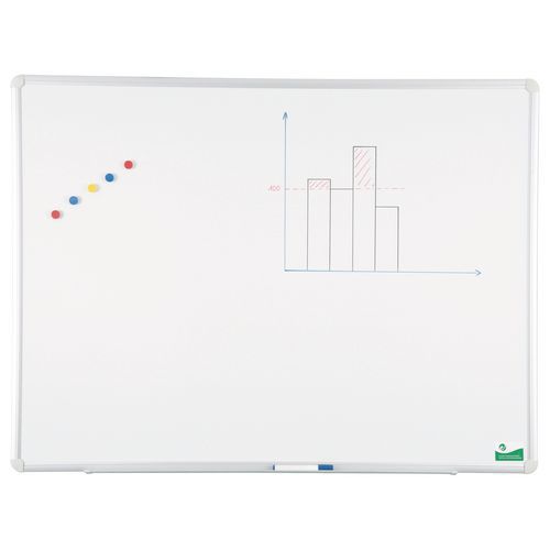Magnetisch whiteboard, geëmailleerd, droog uitwisbaar. Uitstekende leesbaarheid dankzij beter kleurcontrast. Geëmailleerd whiteboard, ontworpen voor intensief gebruik. Goot voor accessoires met klikbevestiging. Geschikt voor intensief gebruik.