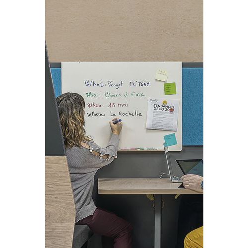 | Productnaam | Whiteboard In'Team droog wisbaar, Gebruik van de stoel: Coworking, Aantal plaatsen: 1 |