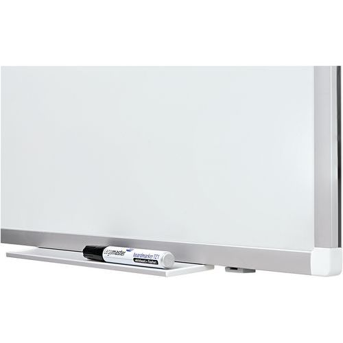 geschikt om met boardmarkers te beschrijven (droog uitwisbaar). Aluminium omlijsting met roomkleurige kunststof hoeken. Zowel horizontaal als verticaal op te hangen. Afleggoot van 30 cm. Eenvoudige wandmontage met verborgen bevestigingssysteem. Wordt compleet geleverd met bevestigingsmaterialen, pennengootje en boardmarker.