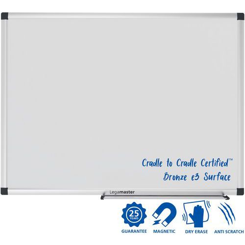 Uitmuntend schrijfoppervlak en zeer goed droog uitwisbaar. Magnetisch oppervlak: om makkelijk aantekeningen, schetsen en foto's op te hangen. Bestand tegen bacteriën: het gladde, niet-poreuze oppervlak voorkomt de groei van bacteriën en ziektekiemen. Eenvoudige wandmontage: flexibele montage en verborgen schroefbevestiging. 25 jaar garantie op de perfecte beschrijfbaarheid en wisbaarheid van het bordoppervlak indien gebruikt in combinatie met accessoires van Legamaster. Dit product is gemaakt van materiaal afkomstig uit goed beheerde, FSC® - gecertificeerde bossen en andere gecontroleerde bronnen (FSC C158462).