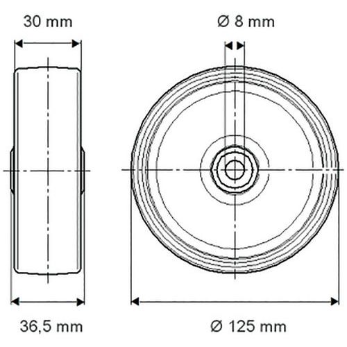 Wiel Maxtech dempend_Tente, Max. belasting: 75 kg, Ø: 125 mm, Wiel/Zwenkwielen: Wiel