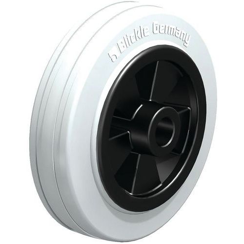 - Wiel met standaard massief rubberen banden, met kunststof velg.