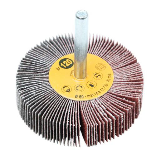 Wiel met lamellen Ø 60 mm, Ø: 60 mm, Breedte: 15 mm, Korrel: 120, Stang Ø: 6 mm, Gebruik: Afwerken