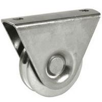 - Wiel van verzinkt staal met V-groef en interne houder voor optimale geleiding.