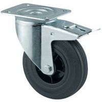 - Zwenkwiel met rem verkrijgbaar met rubberen, rubber-thermoplastische elastomeer of polyurethaan loopvlak.
