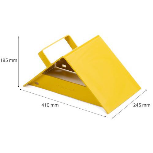 Wielblok vrachtwagen metaal, geel met handgreep - Manutan Expert Metalen wielblok voor vrachtwagen Manutan. Praktisch, beschikt over een handgreep om het wielblok te plaatsen zonder zich vuil te maken.