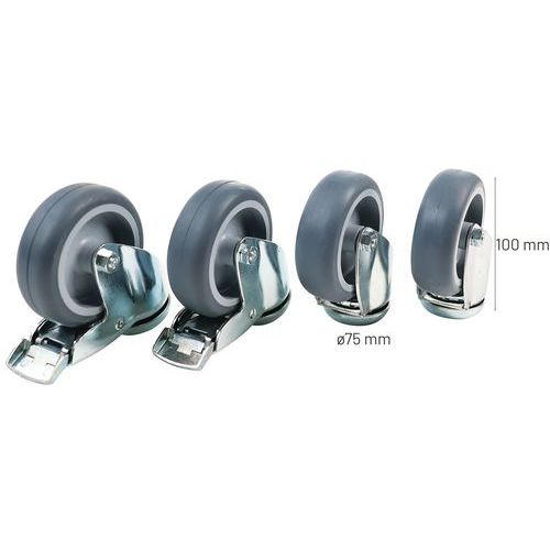 | Productnaam | Wielen voor mobiel kantelbord, Type: Wiel, Totale hoogte: 100 mm, Ø: 75 mm, Recyclebare verpakking: Ja - 100% |
